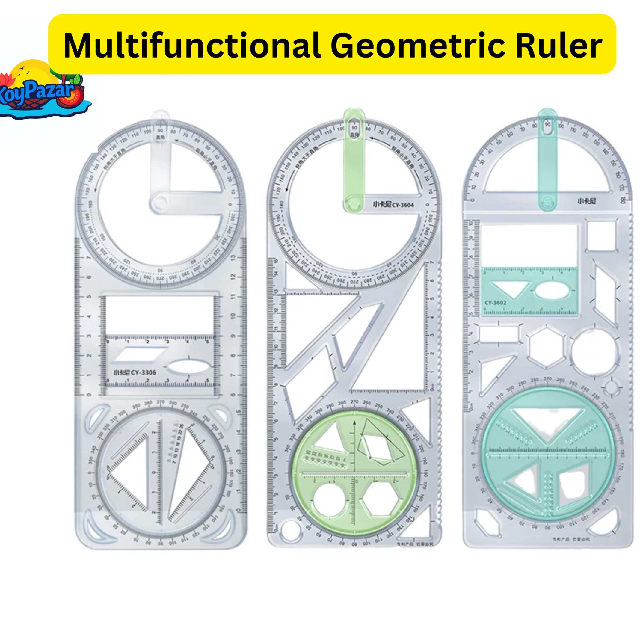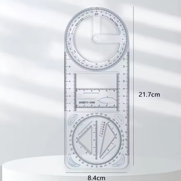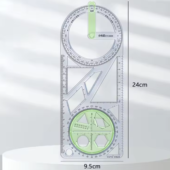 Multifunctional Geometric Ruler হলো একটি অল-ইন-ওয়ান জ্যামিতিক টুল, যেখানে রুলার, প্রোট্র্যাক্টর ও বিভিন্ন শেপ টেমপ্লেট একসাথে রয়েছে। এটি দিয়ে সহজেই নিখুঁত মাপ, কোণ ও জ্যামিতিক আঁকাআঁকি করা যায়। শিক্ষার্থী, শিক্ষক ও ডিজাইনারদের জন্য এটি সময় বাঁচানো ও ব্যবহারবান্ধব একটি আদর্শ সমাধান।